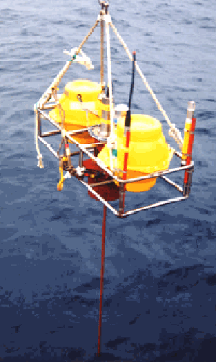 浅い海域では,海底水温変動が激しいため、地殻熱流量を通常の方法で測定することが難しく,信頼できるデータがほとんど得られていません。しかし日本付近のような沈み込み帯では,地震発生帯の直上は浅い海域にあたり,地下の温度構造を求めるための境界条件である表面の地殻熱流量を測定することが重要です。我々は長期間の温度測定の結果から海底水温変動の影響を取り除いて地殻熱流量を求めたいと考え,自己浮上式の長期温度計測装置を開発し,現在観測をおこなっています。